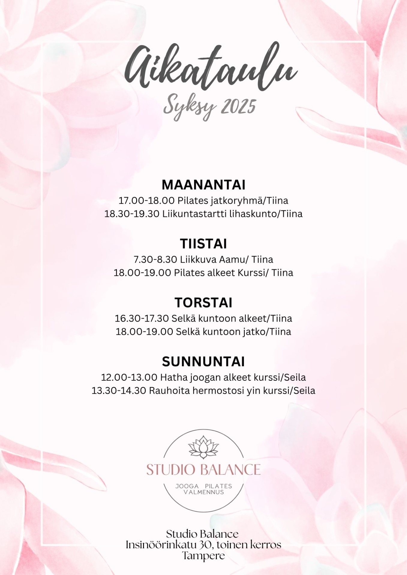 Joogan ja pilateksen pienryhmät ja lihakuntotreenit